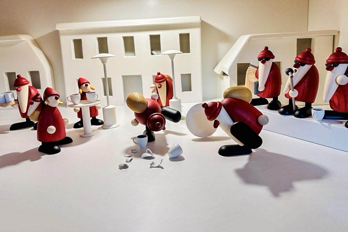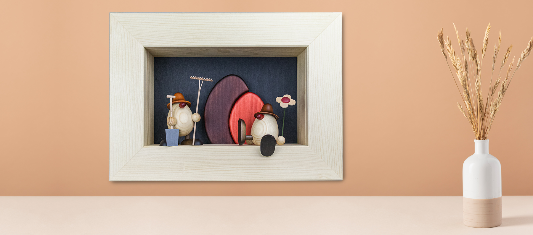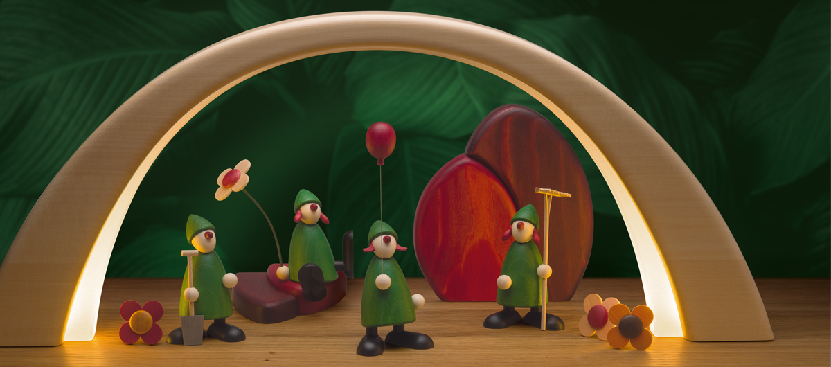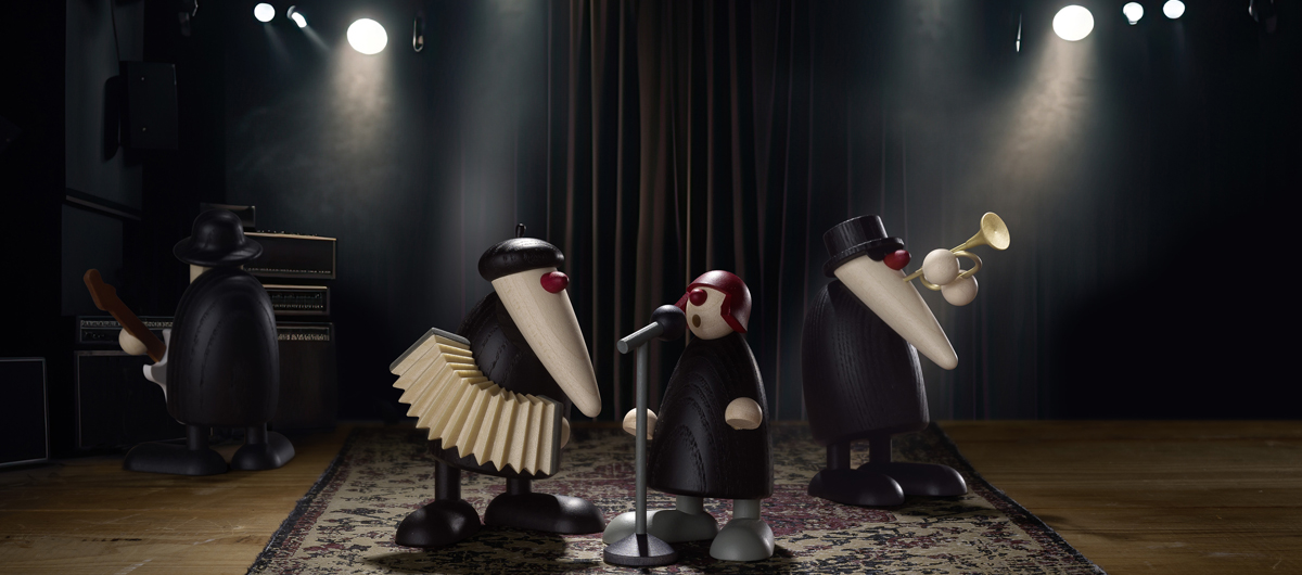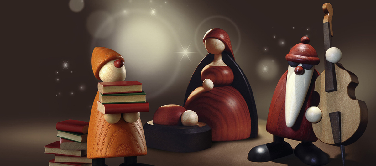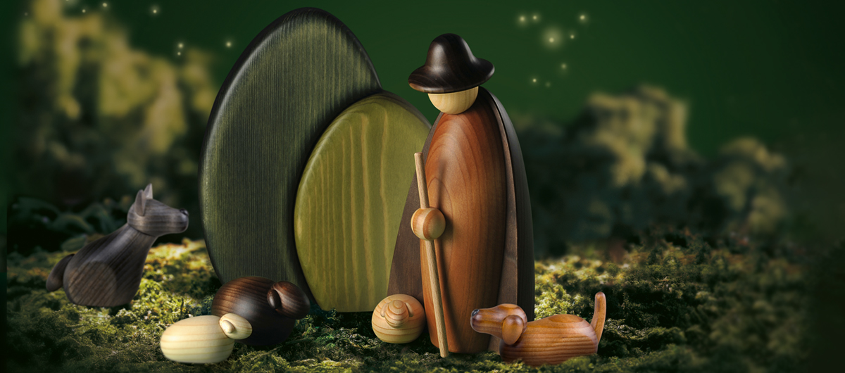 eine eigene Kollektion zu entwerfen, aus der Verbindung von traditionellem Handwerk und Gestaltungsansprüchen der Gegenwart. Mit der Weihnachtskrippe gelang ihm 1991 der Durchbruch. Weitere Figuren folgten. Erdacht am Zeichentisch und immer wieder in ungezählten Entwürfen verfeinert, liegt in dem sparsamen Ausdruck der Figuren ihr wunderbarer Reiz verborgen.