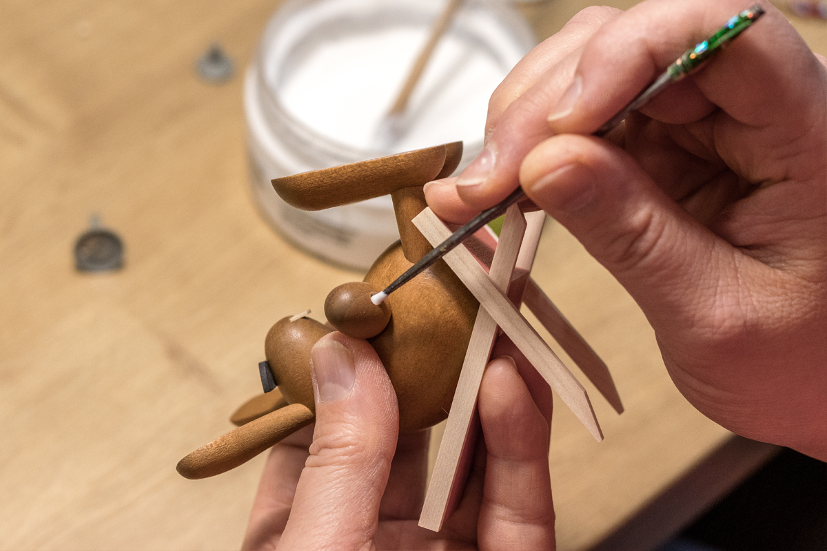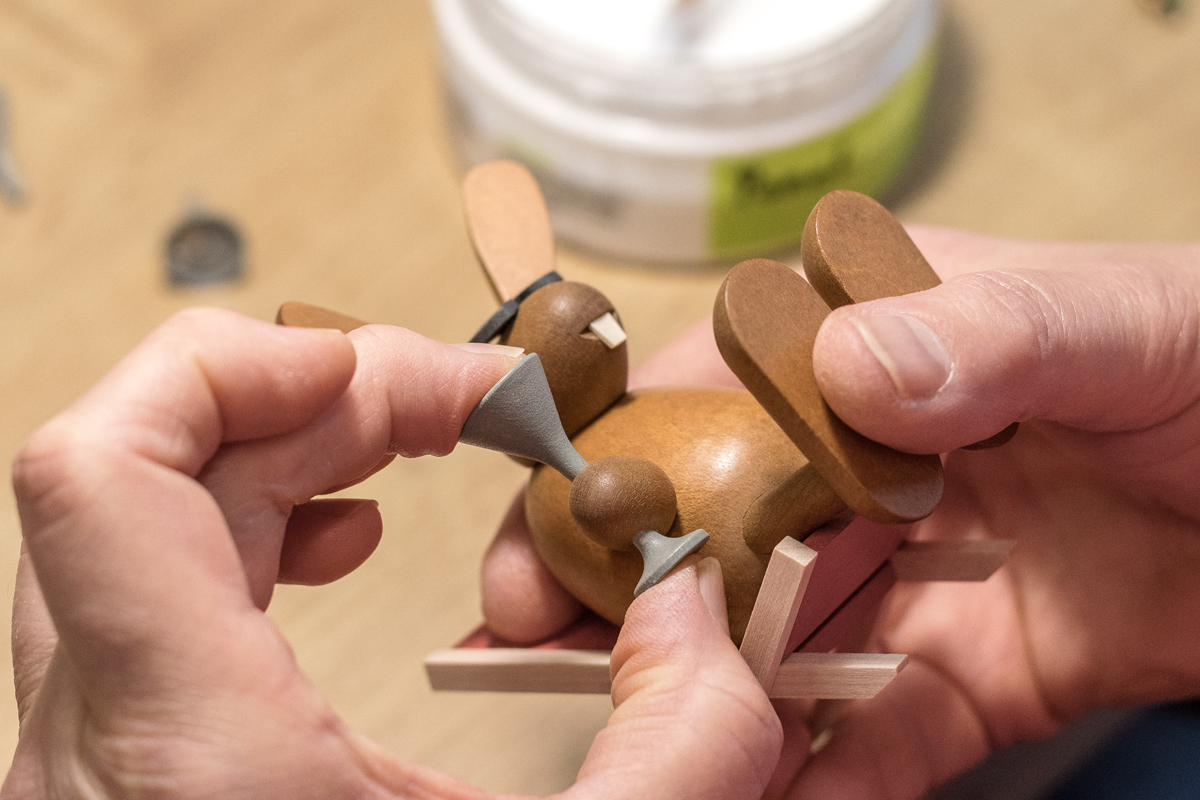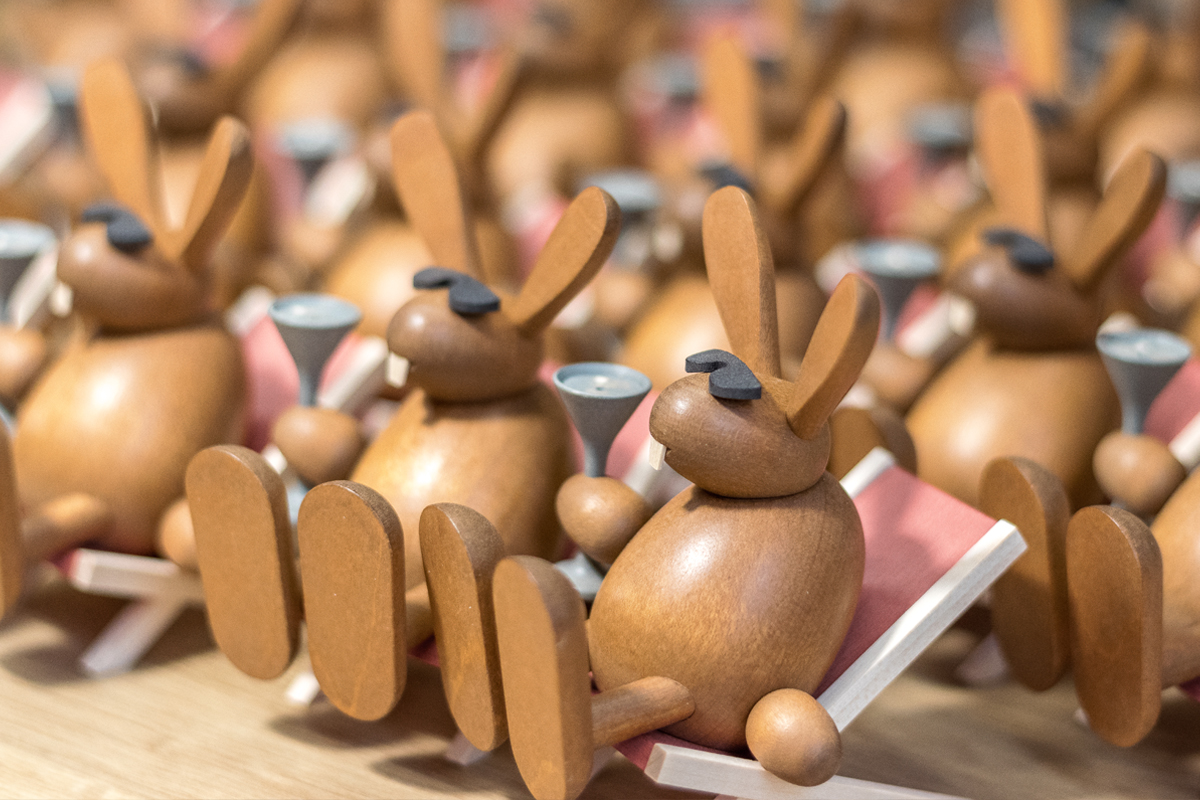 Bleibt noch die Frage zu klären, warum der Hase ausgerechnet im Liegestuhl entspannt: Inspiriert vom Klappstuhl seiner Kindheit – „Klappt der Aufbau oder klappt der Stuhl wieder zusammen?“ – wollte Björn Köhler schon immer mal eine Figur mit diesem Möbelstück kreieren. Dabei entstand nun unser an Coolness kaum zu überbietendes Langohr in der typischen kunsthandwerklichen Qualität unserer Werkstatt.