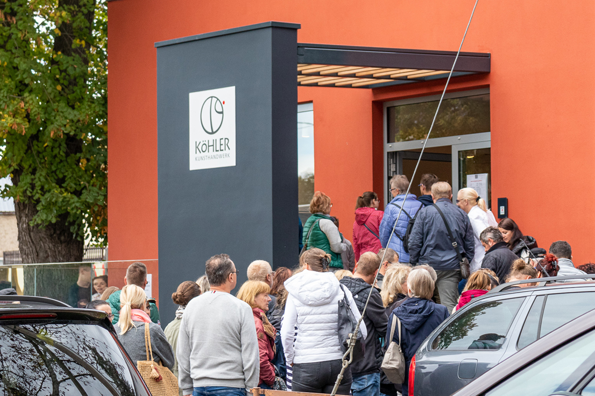 In diesem Jahr war der Tag des traditionellen Handwerks für uns mit besonders viel Nervenkitzel verbunden. Nicht nur, dass nach zwei Jahren ohne die Möglichkeit von Schauvorführungen wieder eine größere Veranstaltung organisiert werden konnte. Auch die Durchführung am neuen Manufaktur-Standort war ein Novum. Und somit war es nicht möglich, auf viele der Erfahrungen zurückgreifen, die wir mit der Fülle an Handwerkstagen am bisherigen Firmensitz erworben hatten.