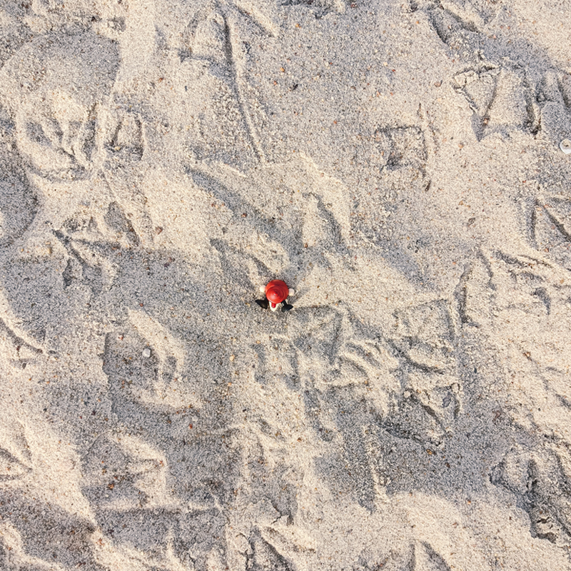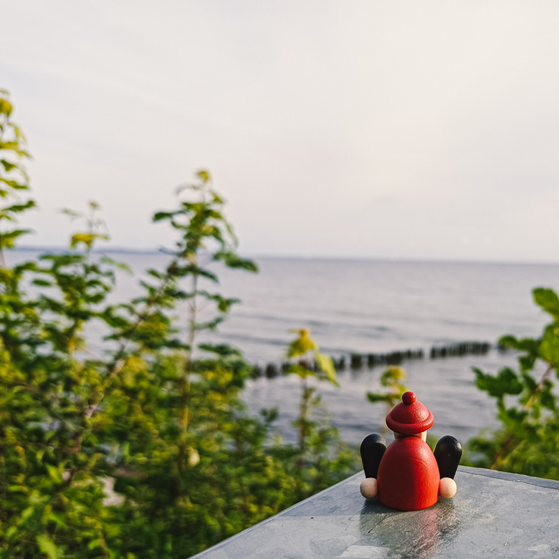 Und weil unsere Figuren ein Stück weit zur Familie gehören, darf meist eine der kleinen Rotnasen mit an die Ostsee, um auch einmal das Meer zu sehen.