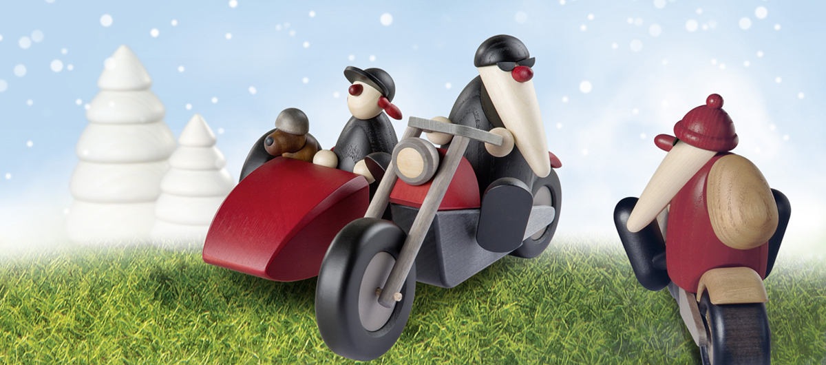 Our Santa already discovered his passion for trips with the motorbike. Therefore, he likes to go on a cruise – alone or with the whole family in the side car.