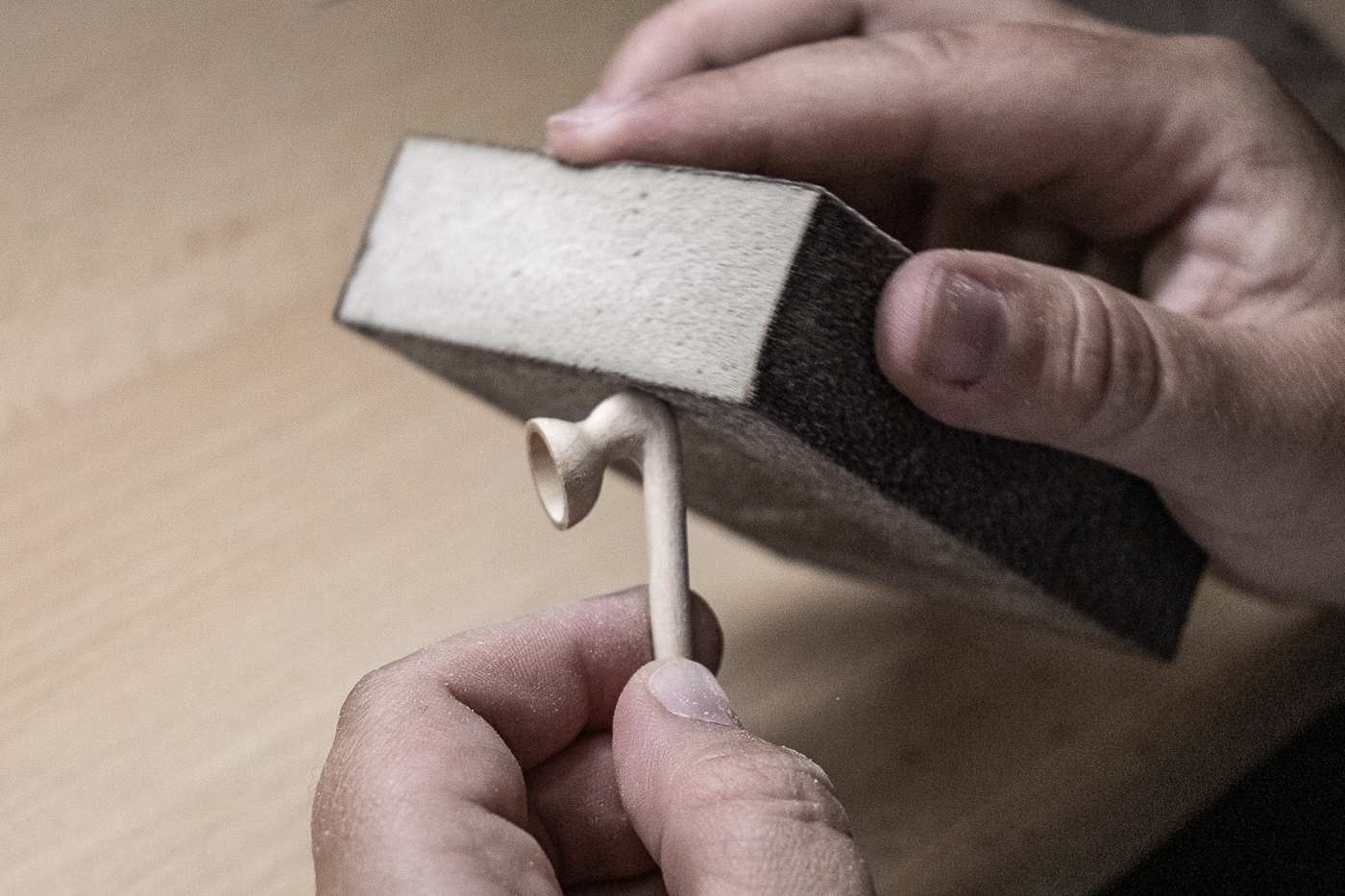 Finding the secret in the wood and revealing it with a good sense of distance, craftmanship and a lot of experience.