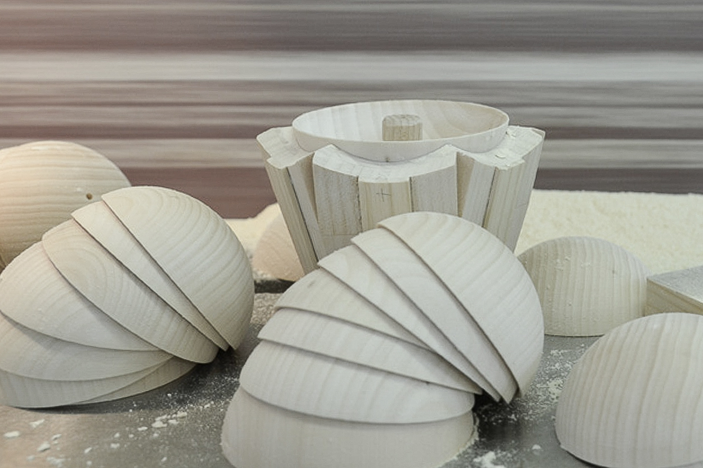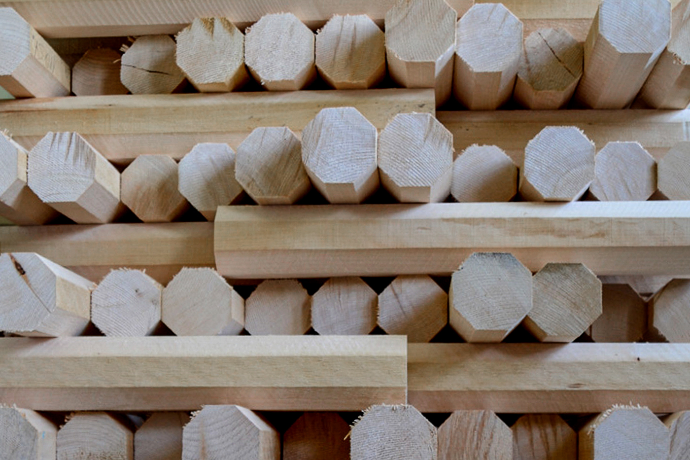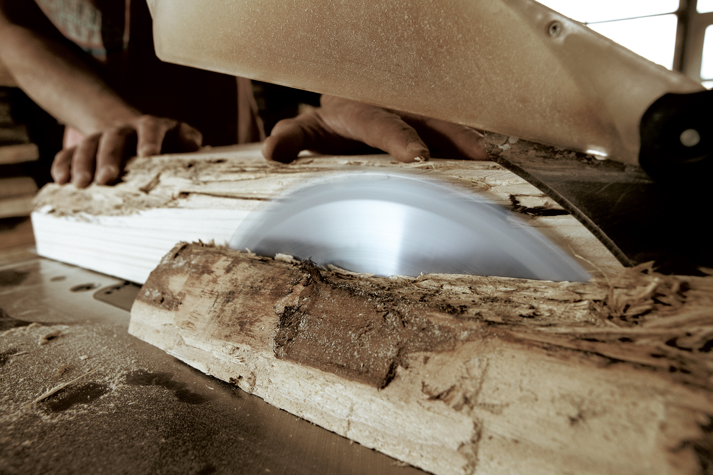 At first, they are conceived at the plotting board and refined in countless wooden designs again and again at the lathe. The basis for the workmanship of the material is caused in the choice of native wood, temperature-controlled storage and the slow process of drying. Thus, the possibilities of the natural material can be used best. The concentration on the basics can already be found in the production, for example in cutting or roughing out the wooden boards.