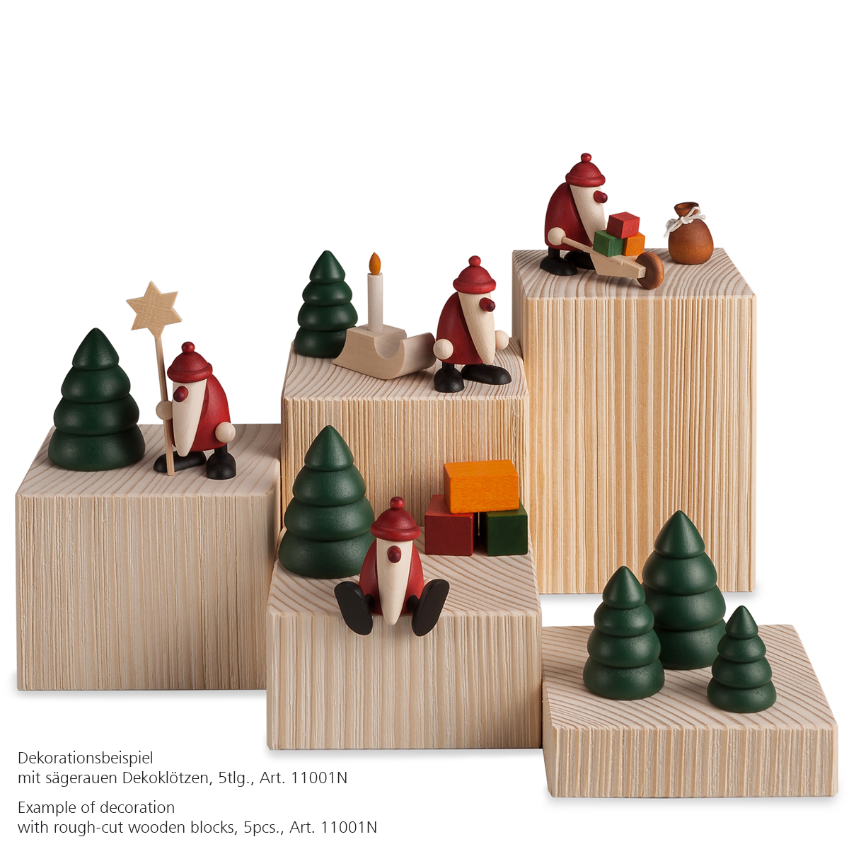 Until now, they were bustingly doing their work covertly. Now the tiny, red-nosed helper come confidently to light in five detailed sets and with two sets of trees - free standing or as special decoration for pyramids. The surface of the delivered tree looks like the surface of the tree-set BK11011.