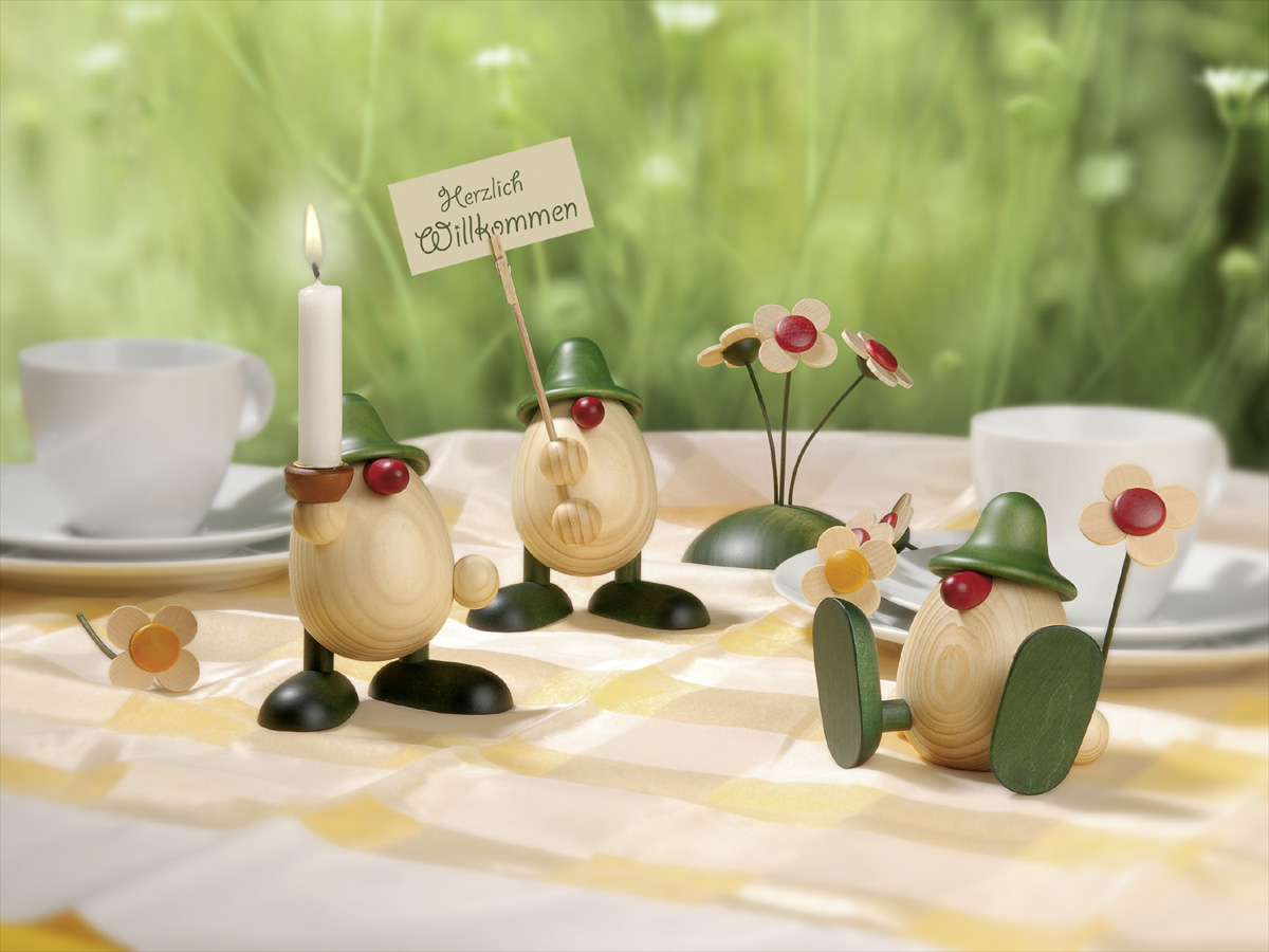 Mit unseren Gratulanten, Eierköpfen und grünen Männlein lassen sich wunderschöne Frühlingsdekorationen arrangieren.