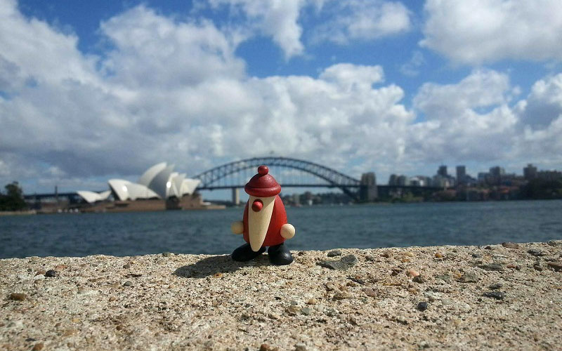 Originale treffen sich: Unser Weihnachtsmann besucht eines der bekanntesten Wahrzeichen "Down Under".
