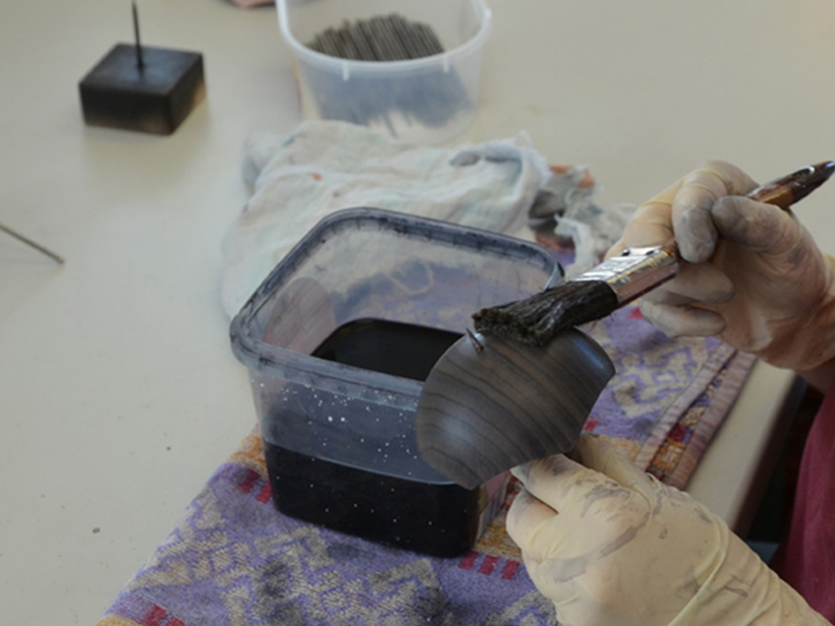 Den bestmöglichen Farbauftrag erhalten unsere Figuren mit selbst angemischten Beizen und viel Handarbeit.