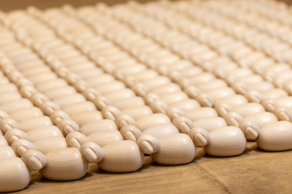 Körper, Köpfe und Ohren kleiner Lämmchen aus feinem Ahornholz türmen sich derzeit an Schleifscheibe, Feinsäge und Bohrmaschine.